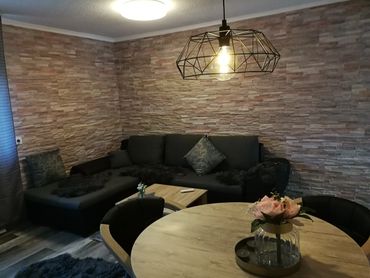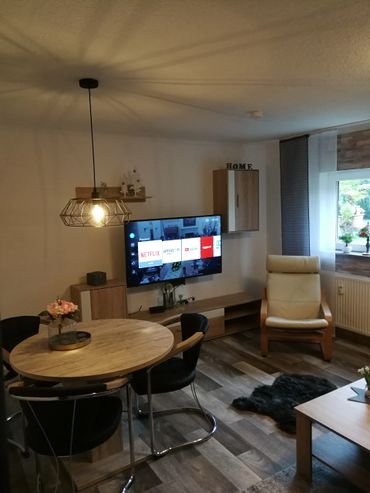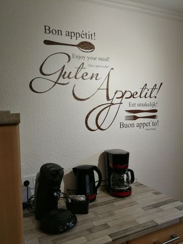 Das gemütliche Wohnzimmer mit Essecke verfügt über einen Flachbildfernseher mit Sat-TV und eine Stereoanlage. Die KÜCHE ist für alle Hobbyköche gut ausgestattet (Geschirrspüler, Backofen, Mikrowelle, großes separates Gefrierfach, KAFFEEMASCHINE, SENSEO, Wasserkocher, Toaster, Eierkocher etc.). Zudem finden Sie eine Grundausstattung an Gewürzen und anderen Utensilien wie Folien, Küchenpapier, Filtertüten etc. zur Benutzung vor.