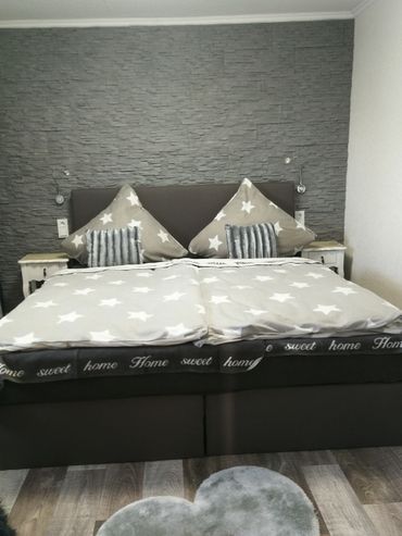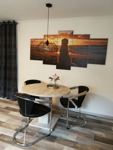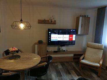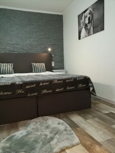 Die Ferienwohnung ist rd. 60 qm groß , verfügt über WLAN und über einen separaten Eingang. Sie ist aufgeteilt in ein geräumiges Wohnzimmer mit Essecke, eine Küche mit Vollausstattung, ein Schlafzimmer mit Kingsize Boxspringbett und Flat TV, ein Bad mit Dusche/WC und einen Flur. Für eine dritte Person verfügt das Wohnzimmer über eine sehr bequeme Bettcouch mit Topper. Ihre mitreisende FELLNASE erwartet ein bequemes Hundebett und zwei Näpfe. Außerdem steht Ihnen ein eingezäunter, großer Garten von ca 50 qm mit Liegewiese zur Verfügung.
