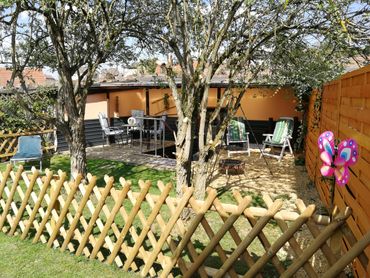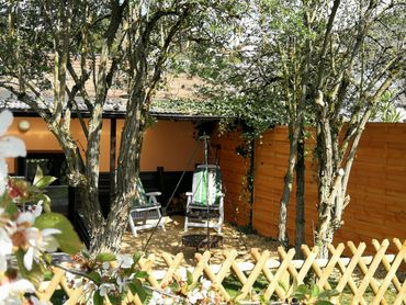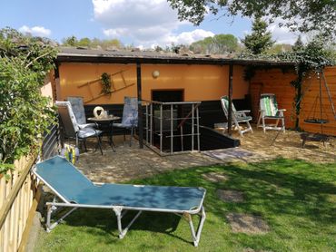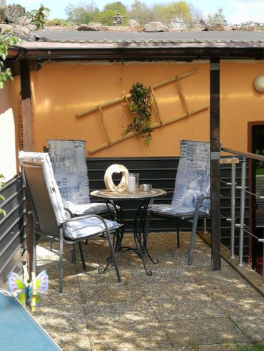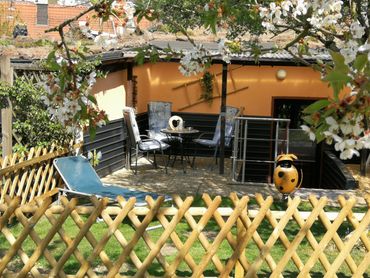 Für ihre "Fellnase" gibt es einen eingezäunten Garten mit seperatem Ausgang und für Sie eine überdachte Terasse. Optimal für Ihren Urlaub mit Hund.